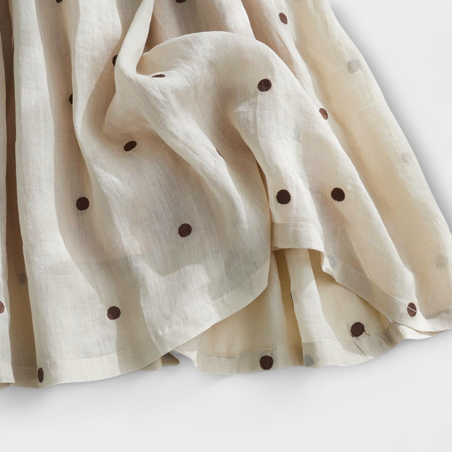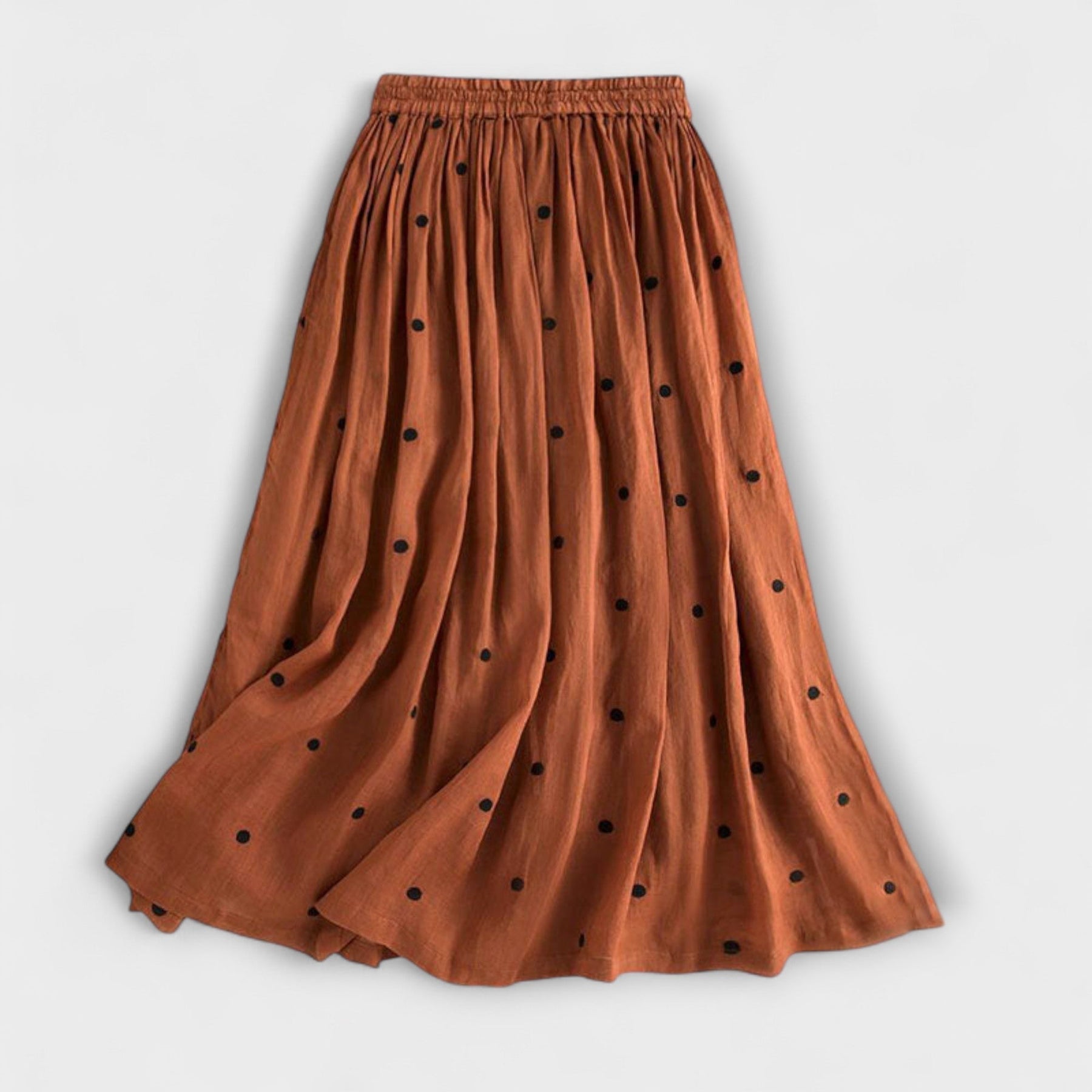 Tutustu ihastuttavaan maksihameeseemme, jossa on pilkullinen kuviointi ja joka yhdistää ajattoman eleganssin ja luonnollisen käyttömukavuuden. Laadukkaasta pellava-puuvillasekoitteesta valmistettu hame hurmaa seuraavilla ominaisuuksilla: